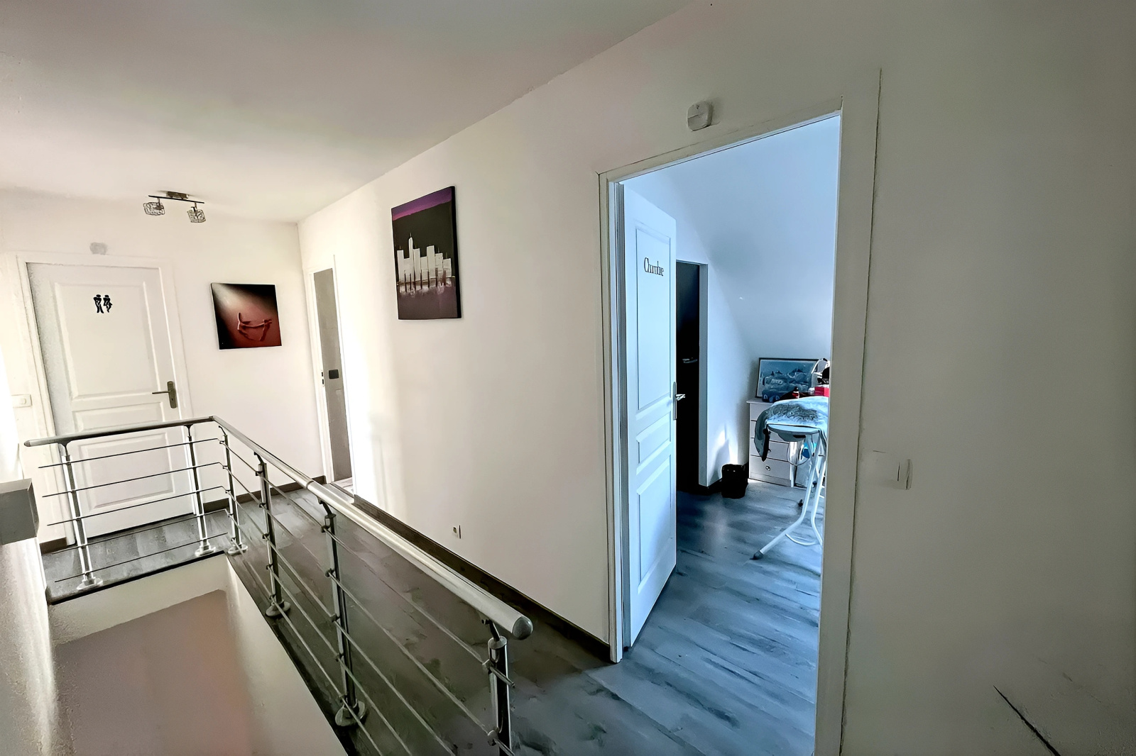 A l'étage : Un palier qui dessert 3 belles chambres, salle d'eau et wc.