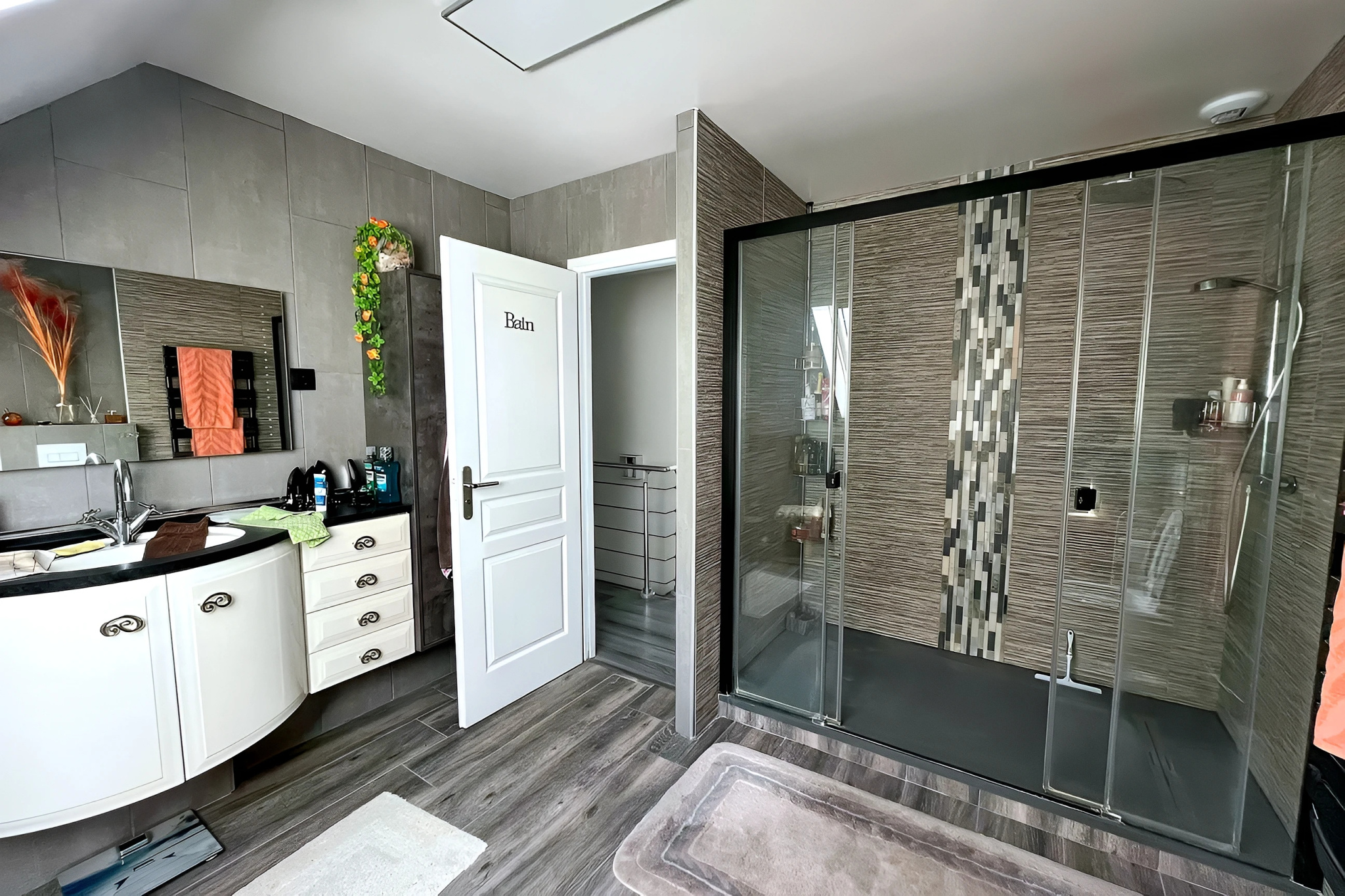 Au rez-de-chaussée : Entrée sur vaste séjour double d'environ 53m², cuisine aménagée. Suite parentale avec chambre, dressing et salle d'eau avec wc.